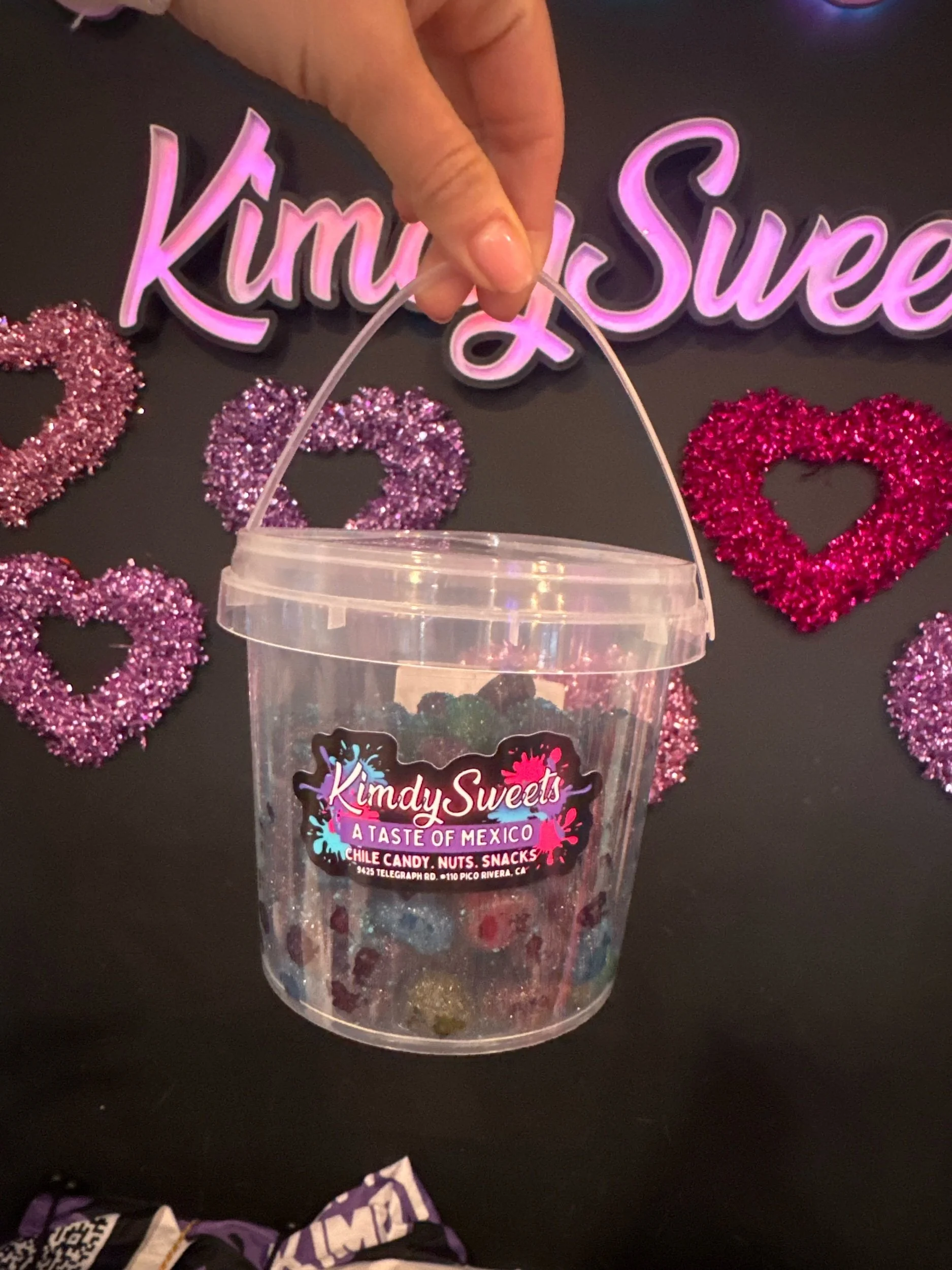 Our 20 oz Blue Razz Gushers Bucket features bold blue raspberry gushers coated in chamoy and chili seasoning for a sweet heat twist. A colorful, viral Mexican candy favorite made fresh by KimdySweets.